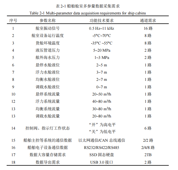 根据在研新型船舶对数据采集记录装置的需求以及各舱室环境与设备运行