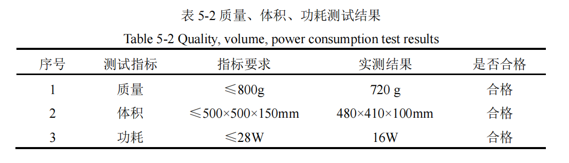 5.2 质量、体积、功耗测试