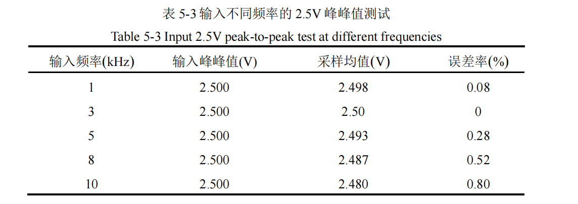 测试 20 次,将采样电压与实际 2.5 V 进行比较,测试数据汇总如表 5-3 所示。