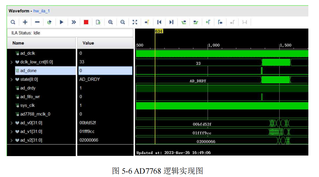 首先通过对此功能所用 AD7768 芯片的 FPGA 驱动逻辑模块添加 ILA(逻