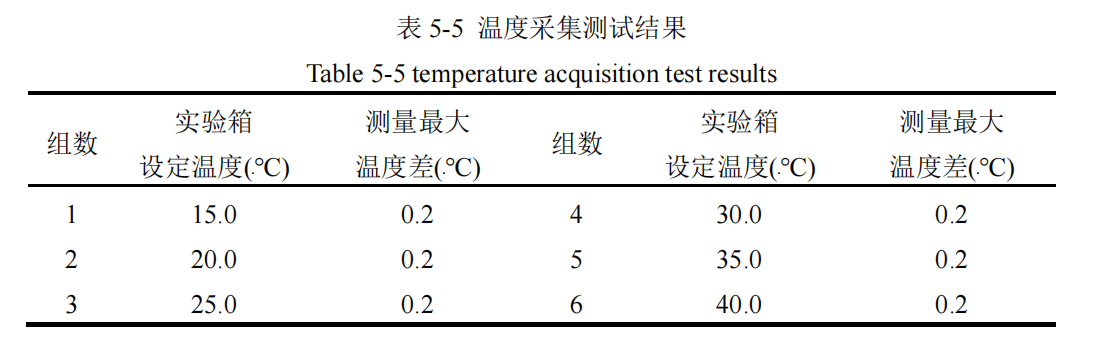 PT100 的监测设备放置实验箱(可设置温度)中测试,测试结果如表 5-5 所示。