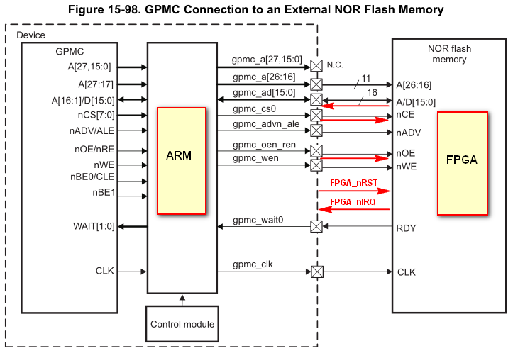 GPMC的全称是 General-Purpose Memory Controller,即通用存储控制器,是TI的Sitara 系列处理器AM5728用来与外部存储设备例如NOR FLASH、NAND FLASH、SRAM等等通信的一个接口。这个接口并不是AM5728特有的,在BeagleBone Black、AM33XX等芯片上也有类似接口。