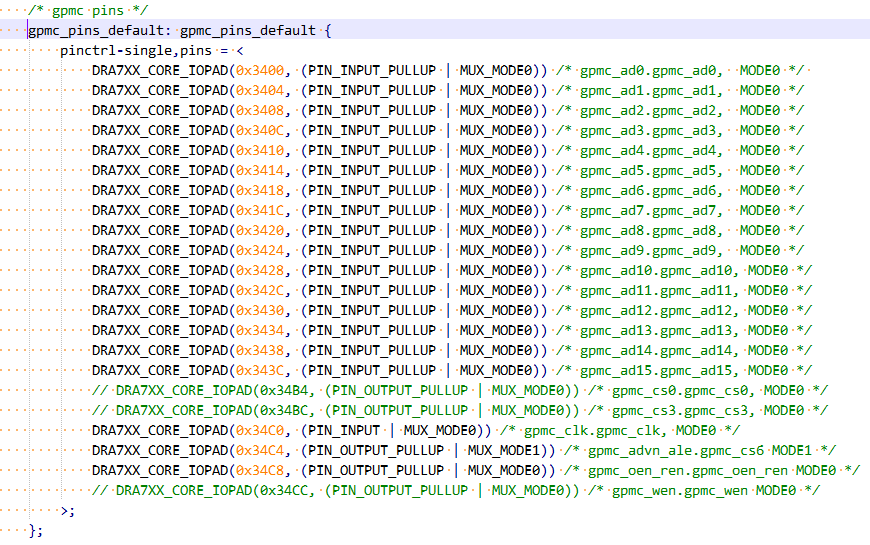 (2)接着在 am57xx-beagle-x15-common.dtsi 加入 GPMC 管脚初始化配置